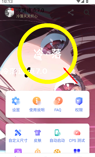 1、启动《冷落连点器》进入主界面,找到屏幕上黄色圆圈标记的激活入口,点击该入口后依照提示完成功能激活步骤。
