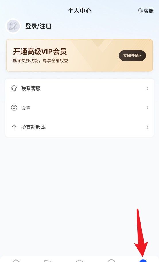 5、我的页面支持与帐户相关的功能,如登录和注册、VIP升级、客户服务联系和设置检查。