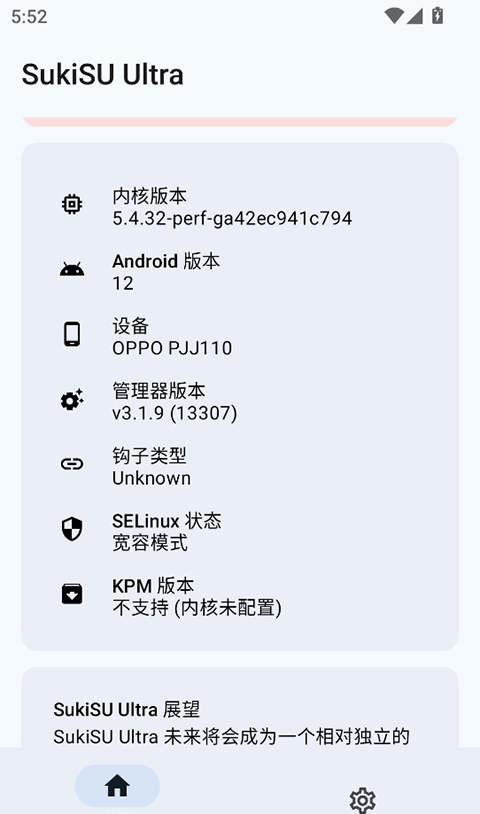 SukiSU Ultra是一款专为安卓高阶玩家量身打造的内核级Root权限管理器与信息面板。这款工具为用户提供了丰富且实用的功能,在设备信息展示方面,它能够详细呈现设备与内核的相关信息,让用户对设备的底层状况了如指掌;SELinux 状态监测功能,可实时监控系统的安全状态,保障设备运行的安全性;管理器版本和更新检测功能,能及时提醒用户进行版本更新,确保使用的是最新、最稳定的版本;日志收集功能则为开发者或高级用户排查问题提供了有力支持。