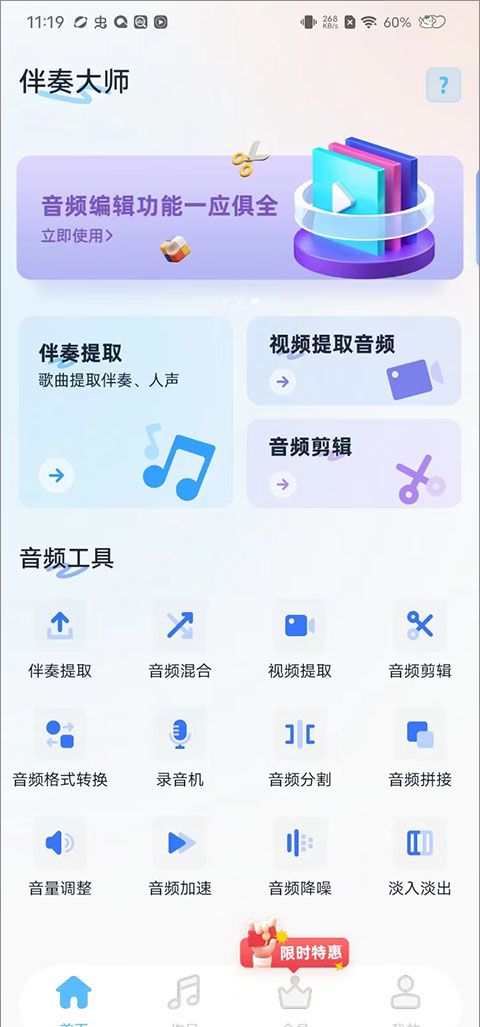 伴奏大师是一款专业的伴奏剪辑提取软件,拥有丰富的功能选项,用户可以自由选择各种音频来进行剪辑提取操作,轻松享受优质的服务,还能直接执行智能化的音频处理操作,包括降噪、录音等,轻松获取热门音频和伴奏,能完全满足所有使用需求,还允许用户轻松创建各种令人兴奋的手机铃声或伴奏音乐,随时随地使音乐编辑更容易,还支持各种常用音频格之间的相互转换,方便用户轻松管理,有需要的用户欢迎来本站下载软件。