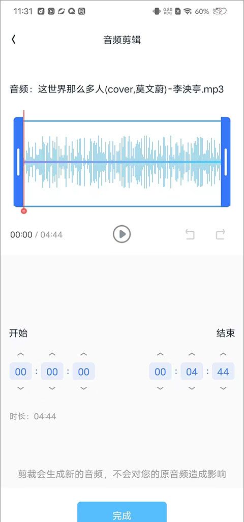 4、此外,您还可以编辑音频,编辑后单击下面的“完成”。