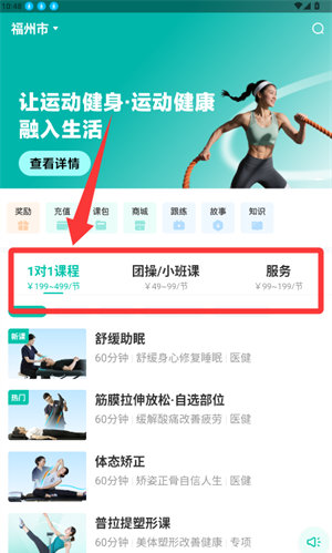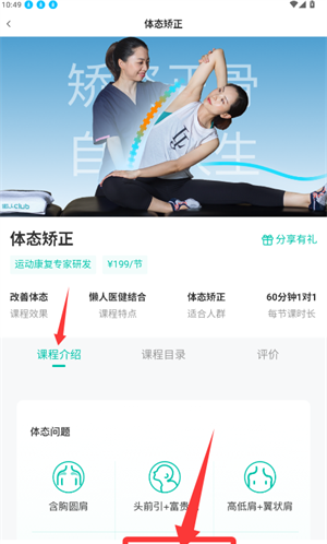 3、从列表中选择姿势矫正类,并在详细信息页面底部完成预约。