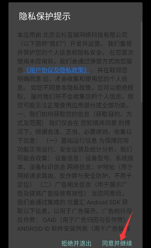 1、启动应用程序将显示隐私保护提示,您需要单击“同意”和“继续”才能进入。