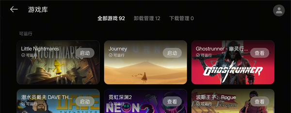 在PC掌玩游戏库,您可以看到您Steam游戏账号的所有游戏,同时对于是否能玩的游戏列表、我们也已经做了初步的分类。依次按照体验流畅 > 可运行 > 暂不支持 > 未验证进行游戏列表展示。在体验流畅。在体验流畅和可运行的类目下,您可以选择想玩的游戏直接启动。