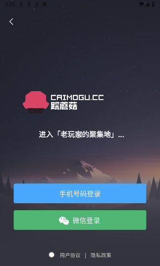 1、在本站下载踩蘑菇游戏社区。同意用户协议。
