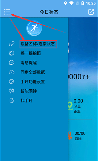 1、通过本站现在并打开Fithere,进入首页后点击左上角的三横按钮,再选择“设备名称/连接状态”进入。