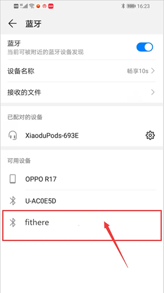 3、我们在搜索到fithere手环的蓝牙后,点击即可进行连接。