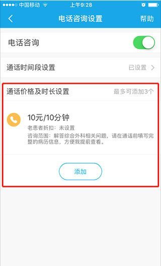 4、点击“通话时间段设置”,设置一个方便的接听电话时间,这样患者只能在设定的空闲时间咨询健康问题。