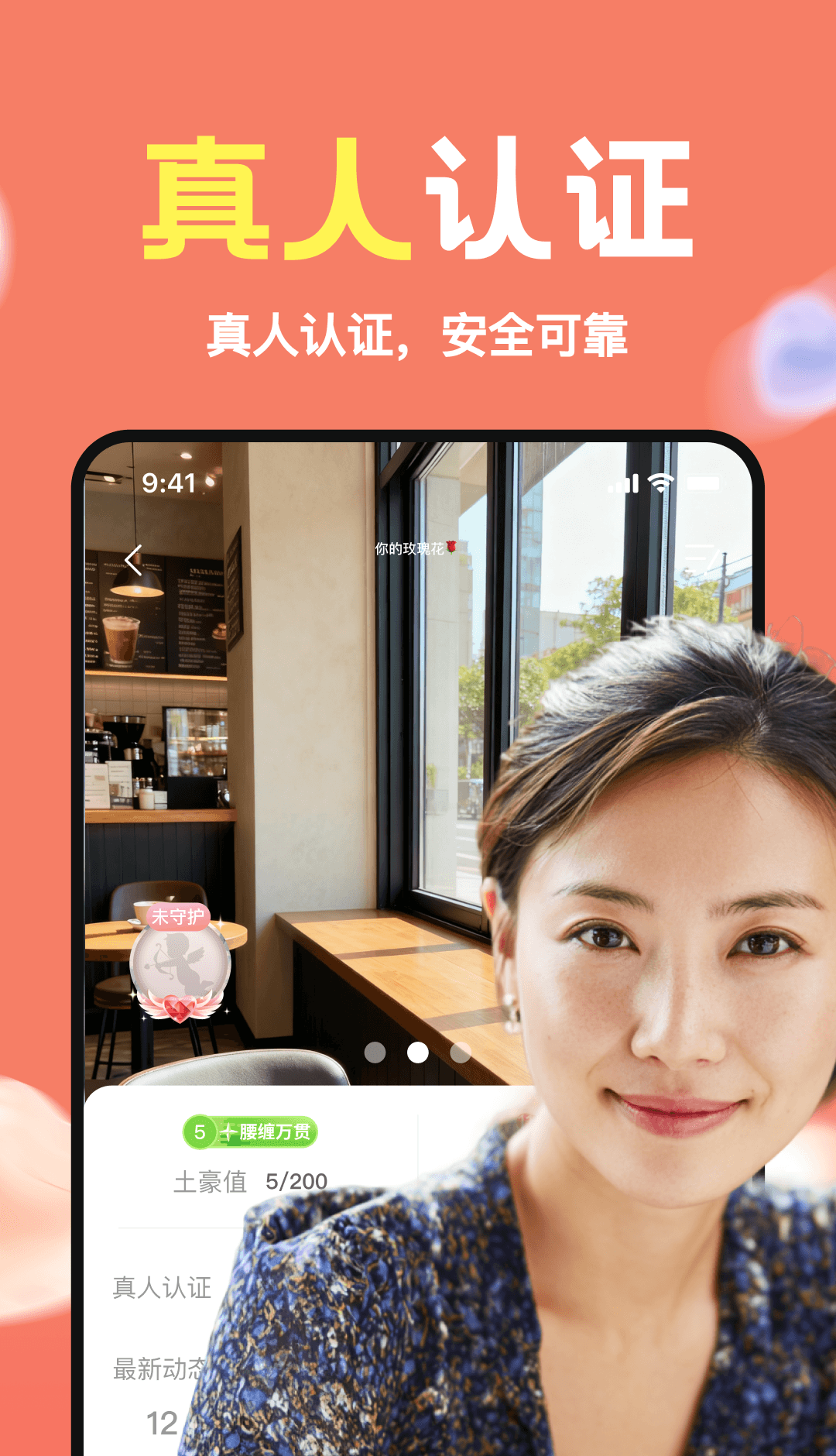 2、真人认证安全可靠,严格执行真人验证机制,确保用户身份的真实性,杜绝假账号,让社交更加安全放心。