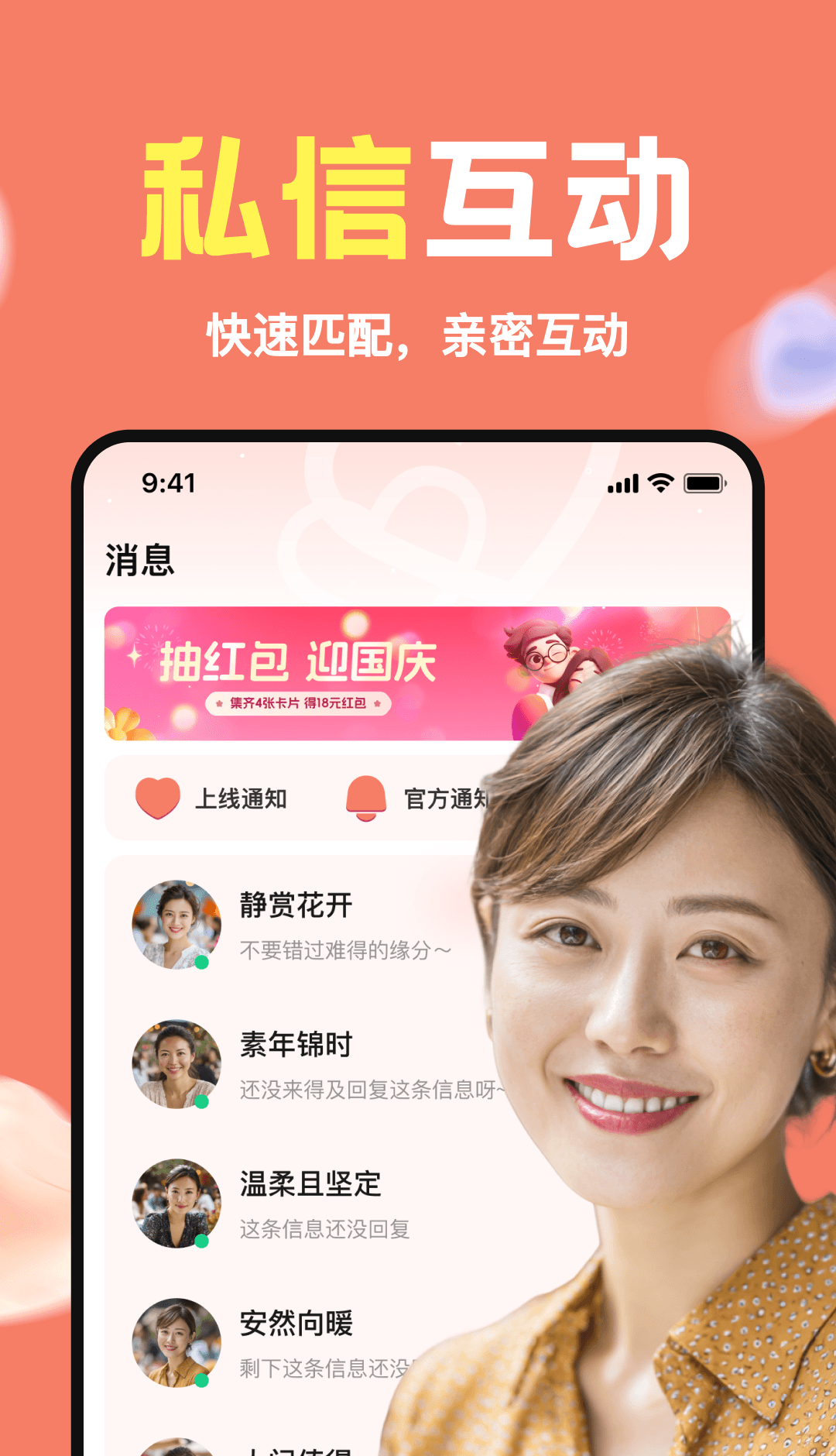 3、用于私人消息交互的快速匹配,支持私信和实时聊天,快速匹配兴趣相投的用户,随时开启随意流畅的对话,弥合彼此的隔阂。