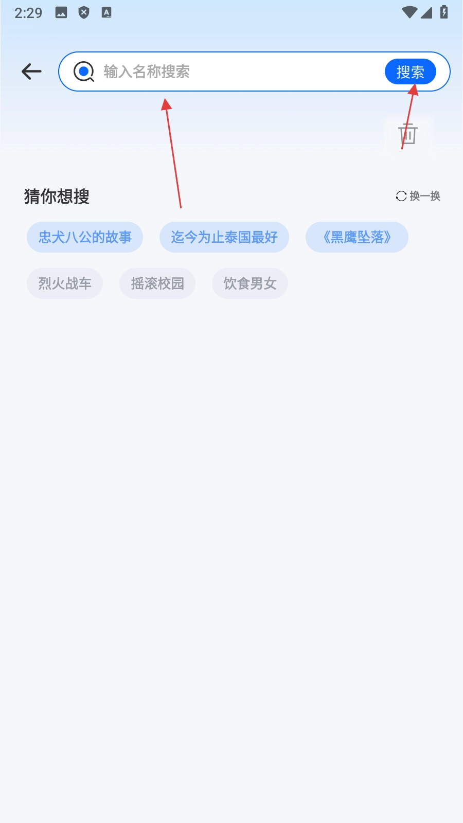 1、单击顶部搜索框进入搜索页面。