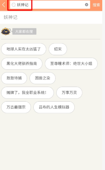 3、如图所示,输入漫名或关键字,点击"搜索"。