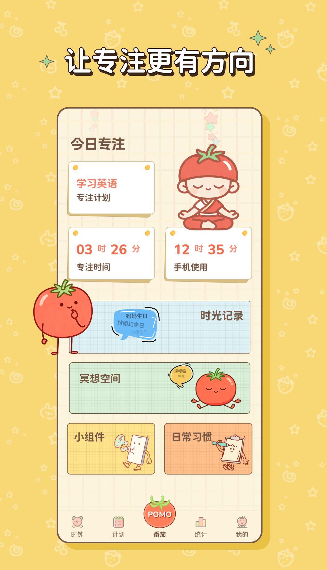 1、沉浸式番茄聚焦体验搭配科学作息周期舒缓身心。