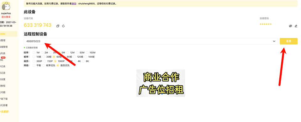 3、填写被控端的设备代码,然后发起远程;