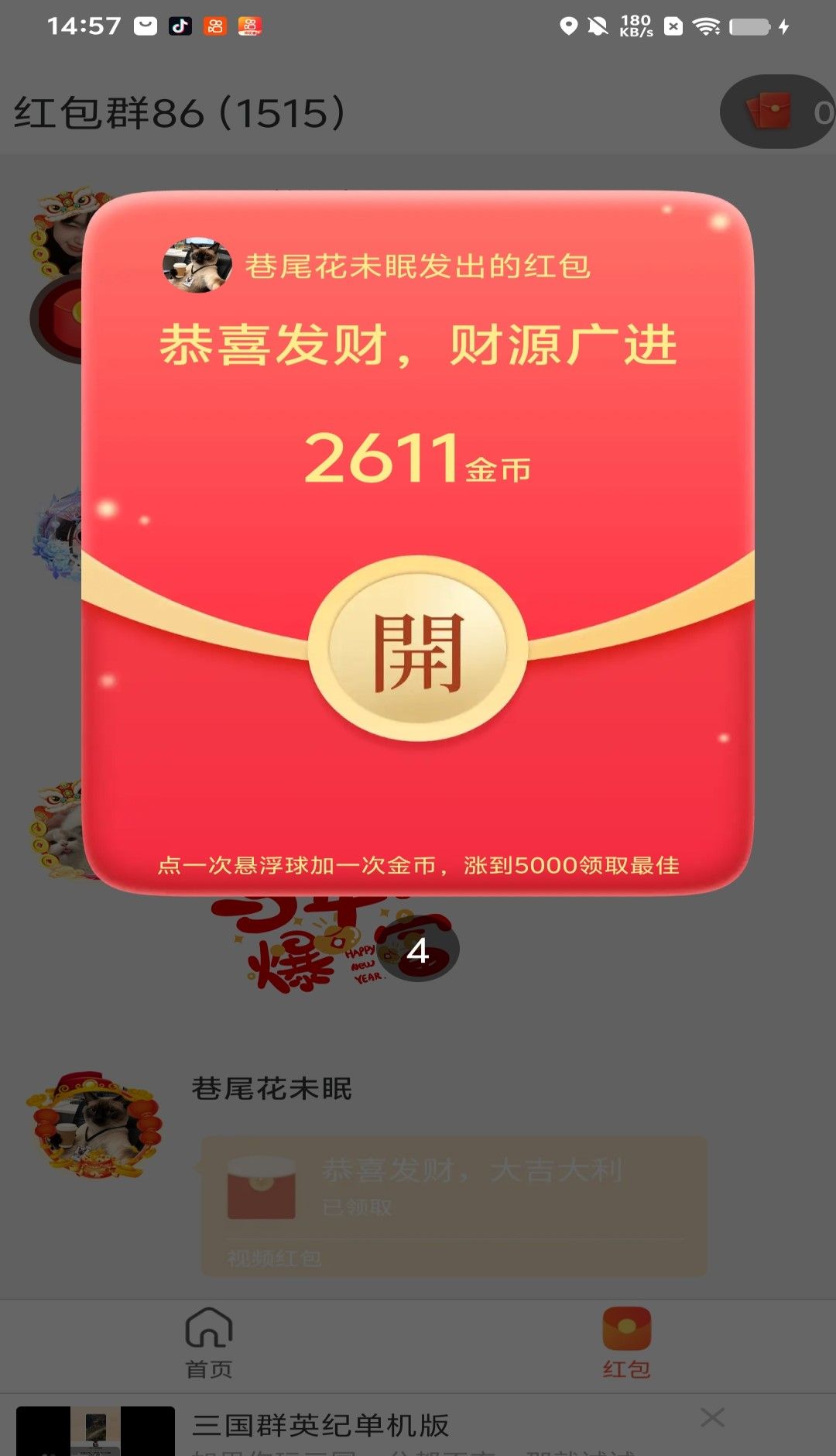 3、金币可以通过收红包看广告等方式获得并用于解锁内容。
