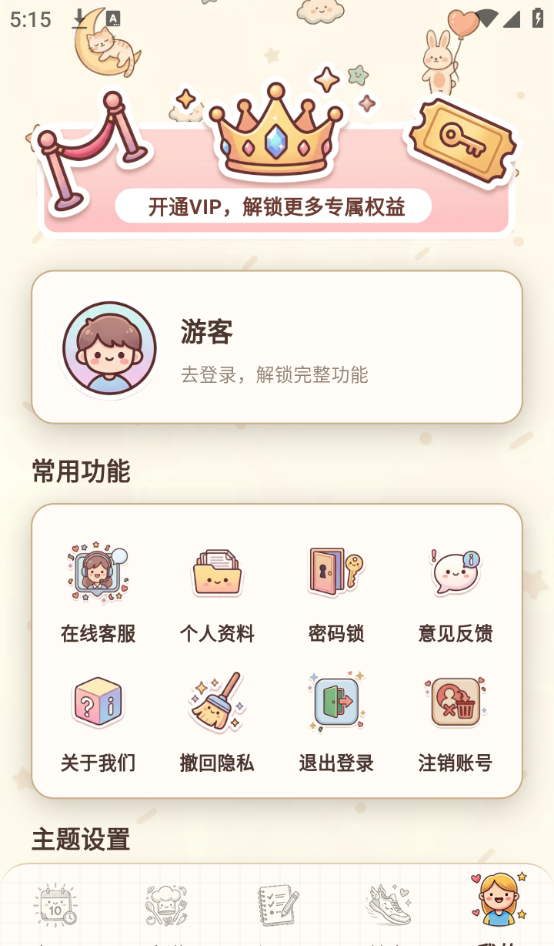 1、界面萌系可爱、风格简约治愈,使用体验轻松舒心。