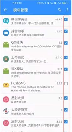 打开模块管理就可以看到安装的模块,勾选模块的时候会提示该模块支持应用的版本,而应用版本也可以再太极主界面看到,版本不兼容是使用不了模块的 。