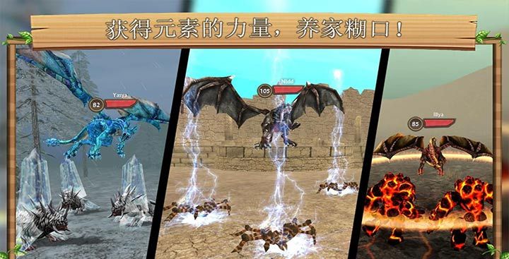 4、炫酷多彩的魔法特效,红色的火焰巨龙,蓝色的冰霜巨龙还有紫色的雷霆巨龙有着各自的特点,还有更多不同的巨龙等你解锁哦!