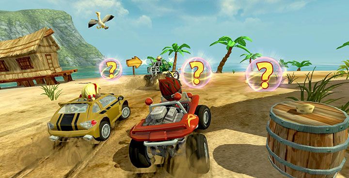 《沙滩赛车竞速》(Beach Buggy Racing)源自于著名的“沙滩车”(Beach Buggy)系列,目前该系列已在全球取得了超过5千万下载量的好成绩。本作延续了该系列的精品路线,玩家将通过12条极其复杂的赛道来完成比赛,其中包括了恐龙曾群居的丛林、岩浆喷涌的火山、阳光普照的沙滩以及神秘的沼泽等极具特色的线路。每条线路都分布着秘密的捷径小道,各种神奇的道具散落其间,可满足你加速、猛冲以及弹射驾驶员等各种需求。