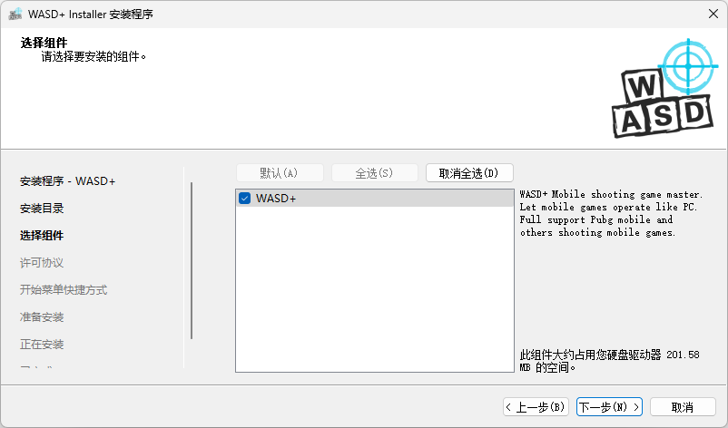 1、在本站下载WASD键鼠大师安装程序并打开,点击下一步