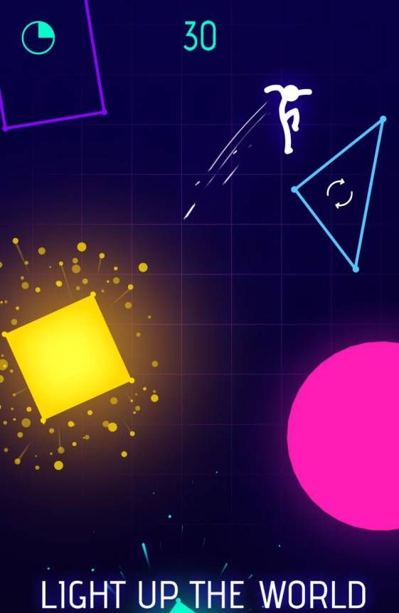在游戏中你需要控制你的火柴人在不同几何形状的方块中来进行跳跃并且点亮这些不同形状的砖块,游戏中玩家能够体验到无尽的挑战,在面对不断增加的砖块你不仅要即时的躲避它们避免被压到,同时还要注意要保持自己的平衡不要掉落到深渊,喜欢的话快来试试看吧。