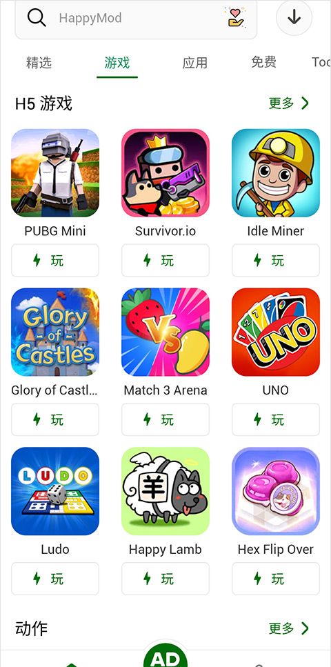 HappyMod里面也有一些h5游戏,但是加载比较慢,可以直接打开玩,很像微信里的小程序。它有自己的社区,但都是英文的。英语好的朋友可以玩玩,在提供原app下载的同时下载最新的应用。在这里下载非常安全可靠,速度极快,包括Google Store应用和一些国外游戏,应有尽有,欢迎体验!