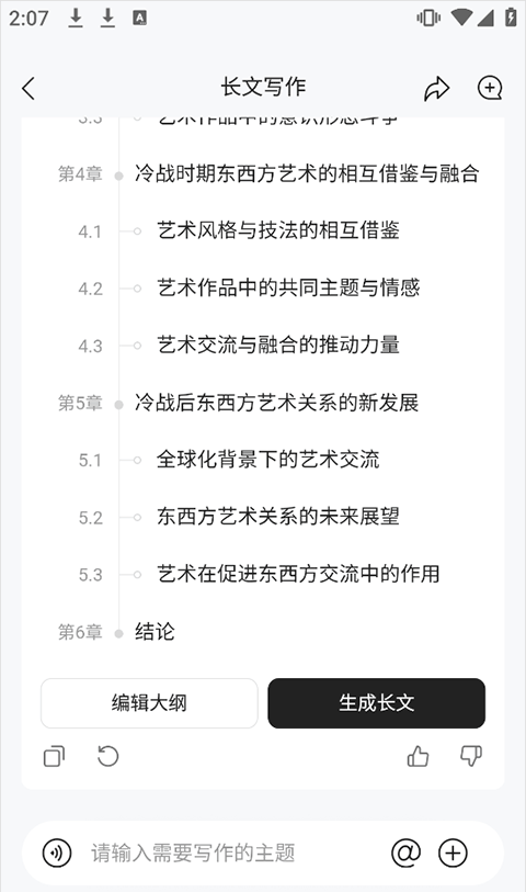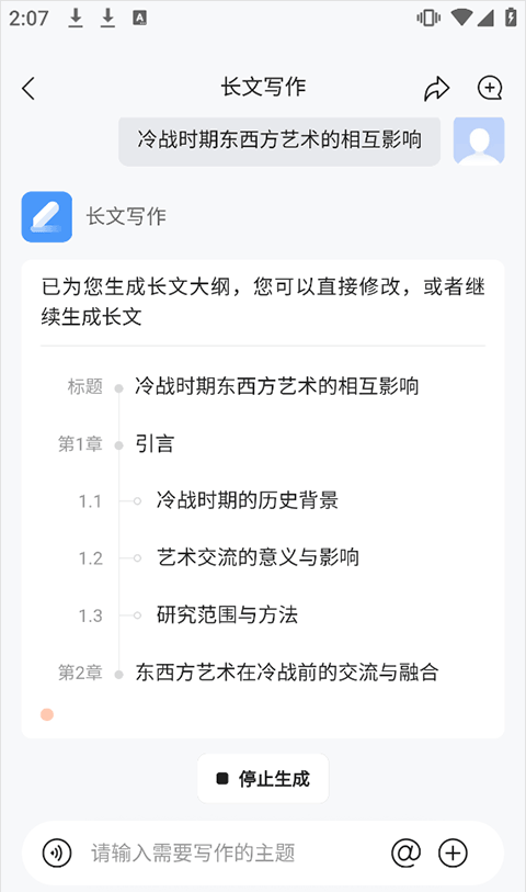 4、可以继续等待大纲生成,或者停止后直接生成长文