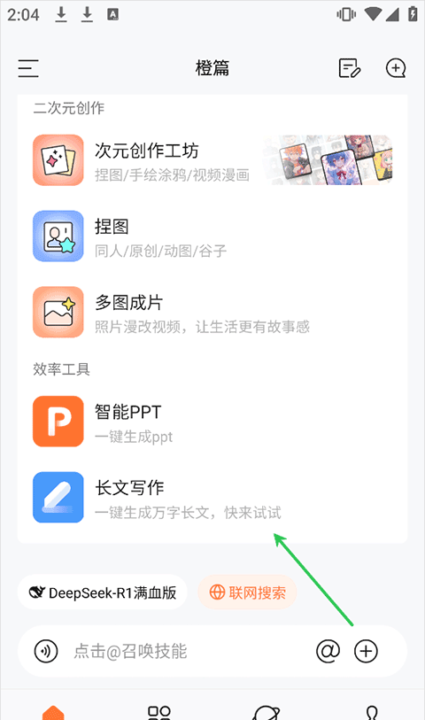 橙篇官方版是百度专门为年轻人打造的一个创意和交流平台,尤其是它的ai写作能力非常强,所以也被称为:橙篇ai写作软件。橙篇app现已接入DeepSeek AI模型,无论是智能PPT制作、长文写作还是长文档总结,都可以轻松完成,让你的创作变得非常高效和智能。同时,在橙篇官方版app中,还可以找到简单易用的二次创作工具,轻松制作自己的角色壁纸、头像等。感兴趣的朋友不要错过下载。