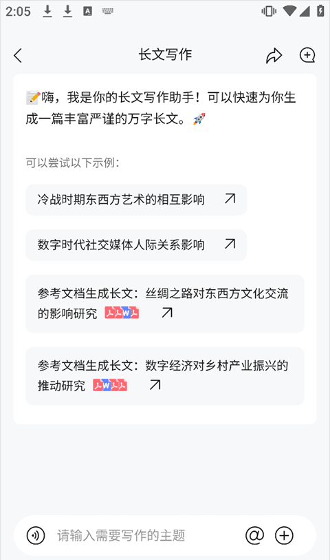 2、在打开的新界面下在底部输入框中输入你想要写作的主题