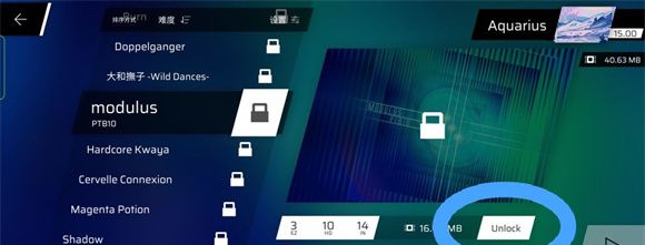 3、如果是Single章节里面的歌曲锁住的话,需要购买歌曲,点击Unlock即可购买当前歌曲。如果是别的章节锁住的话,需要完成一定条件才可以解锁。比如Chapter 5:在Legacy章节把任意六首歌的任意难度打到880000分以上(同一首歌的不同难度算一个)。Chapter 6:在Chapter 5把Leave All Behind的任意难度打到880000分以上。Chapter 7:在Chapter 6把lgallta的任意难度打到880000分以上。Chapter 8 & Side Story 2:在Chapter 7把Rrhar'il的任意难度打到880000分以上。Side Story 3:在Chapter 6把NO ONE YES MAN的任意难度打到920000分以上。