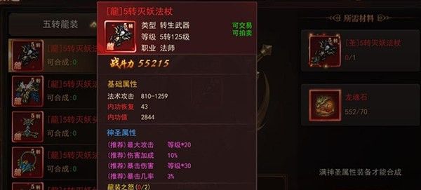 如不满意,我们可以继续选择去合成来获得至强的满属性圣装,五转后我们还通过分解获得龙魂石来对圣装升级得到更强的龍装。