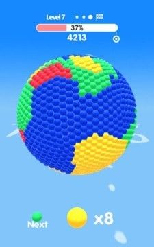 控制好瞄准的技术,准确的将小球射击到大圆球上面,周围的颜色都会发生变化!