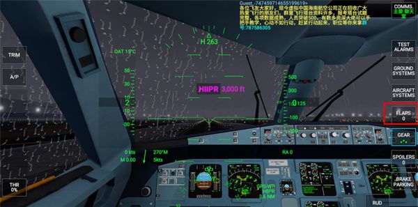 3,校正角度后,默认进入飞机机尾的视角,首先需要调整襟翼。按住右侧的FLAPS,选择第一级。