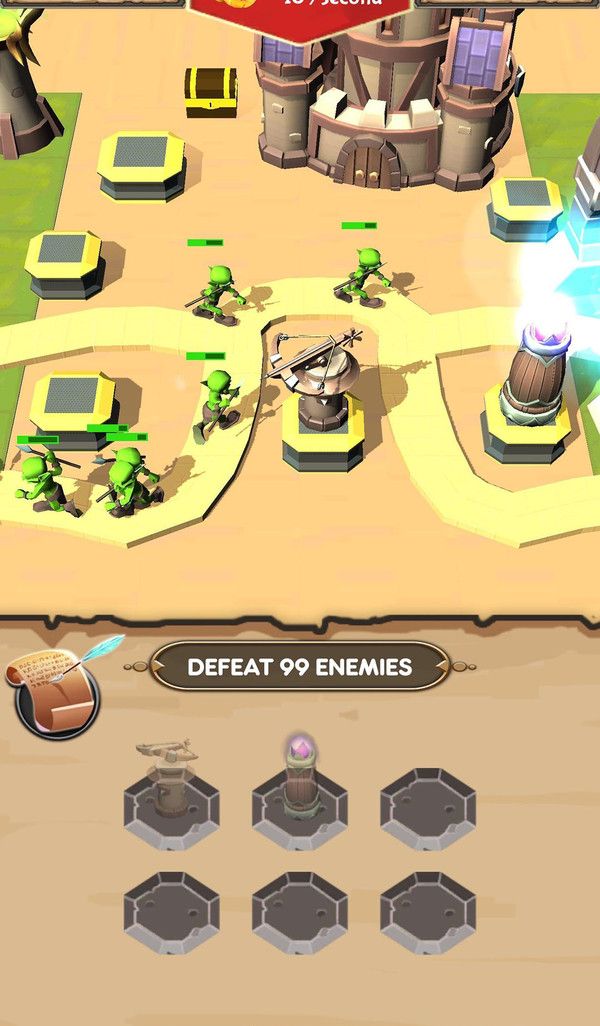 合并中世纪塔防具有策略性的中世纪战斗场面更加的精彩,这里的画面非常精美,各种城堡看起来非常的炫酷,玩家要建造自己的炮台,使用这些炮台向着哥布林进攻,其中炮台进行各种合并,就能够制造等级高的炮台,玩家需要建造各种不同类型的防御塔来防守住哥布林的一波波入侵,阻止邪恶的哥布林破坏你的家园。