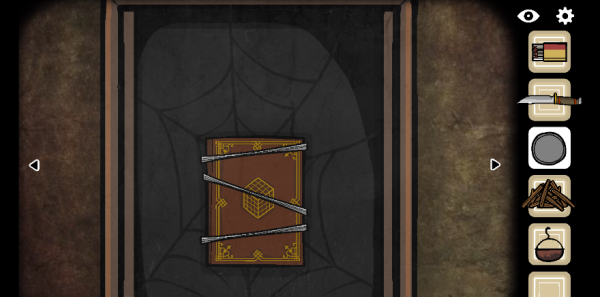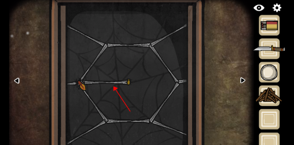 3.拖动按钮,打开柜子,点击细的蛛丝不让蜘蛛吃到虫子,完成小游戏后,得到一本书籍把它放在旁边的架子上。。