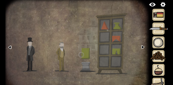 来到对面,完成墙上的解谜(根据石墩上的图形,将柜子上对应的图形移到石墩上即可)