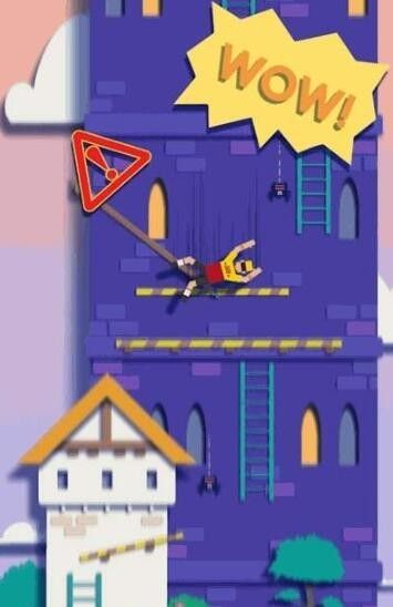 1、梯子战士令人视觉舒适的美术风格极大降低了玩家的恐高症,灵活躲避各种障碍;