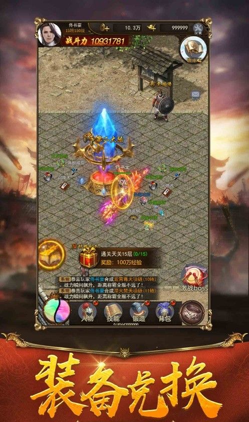 3、丰富多样的BOSS玩法,体验疯狂刷BOSS的快感;PK必爆炫装,带给你熟识的传奇体验。