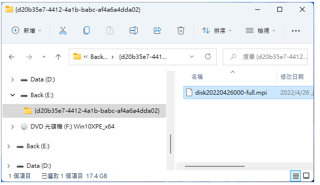 8、开启档案总管,备份完成的档案如下图所示。