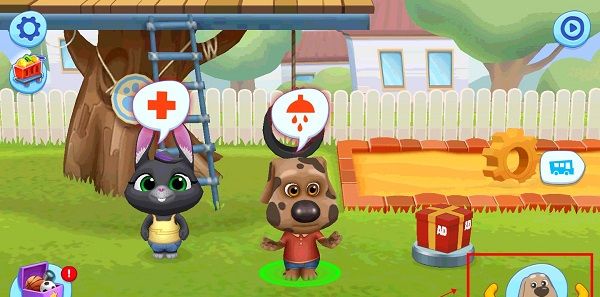点击每位家族成员头顶上的图标,便可帮助其完成愿望,当房间内存有成员们想要完成的事情时,点击图标便可只身前往,再点击对应的位置即可,比如图中狗狗本头顶出现了“淋浴”的标志,说明它现在想要洗澡,点击它的头顶,便会来到浴室旁,在点击浴室即可。