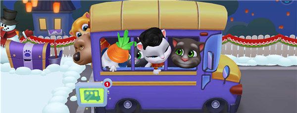 《汤姆猫总动员》游戏中,前院小花园门口有随时待命的小巴士,使用巴士特别货币(可通过日常、或者玩小游戏、购买获得)可搭乘小巴士前往城镇逛街。
