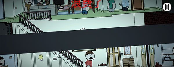以派对为例,进入后左下角滑动可以呼出隐形轮盘,操控憋翔主人公移动探索房子,靠近物体或者人物,会显示气泡,点击气泡可以触发动作。