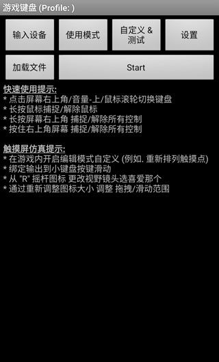 1、打开虚拟键盘手机版,上面标明了快速使用提示和触摸屏仿真提示;