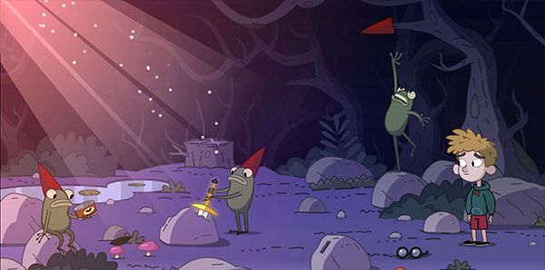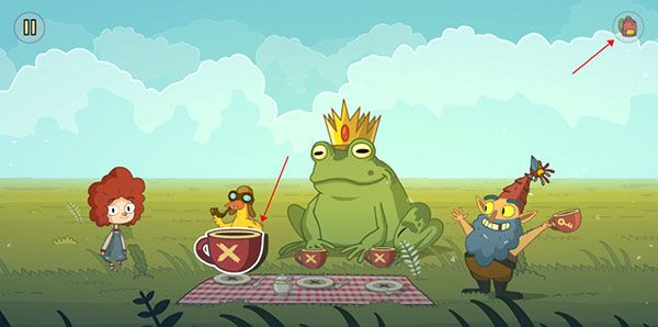 2、然后我们可以看到一个草坪上的青蛙,点击它,会出现小女孩。