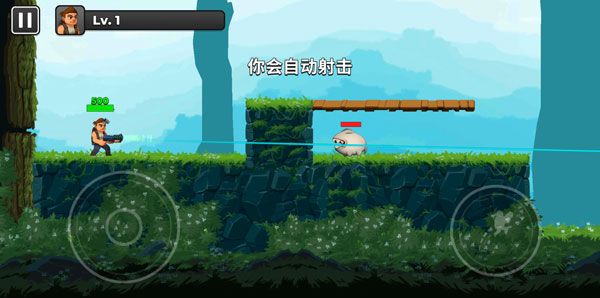 5、两个木板平台之间可以通过左边轮盘的上下键互相跳跃,靠近敌人会自动射击。