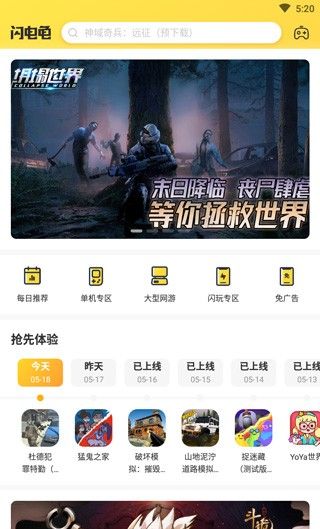 1、打开闪电龟app,在首页可以看到很多爆款游戏。