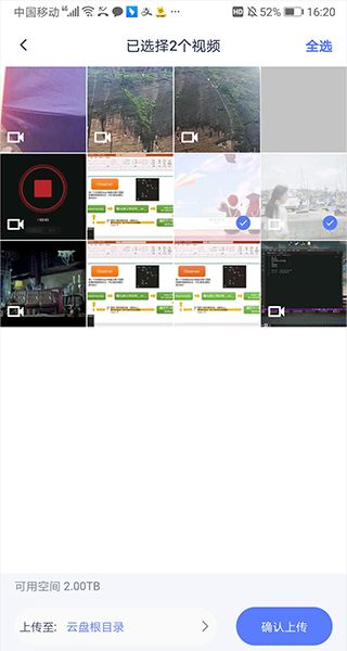 2、例如上传视频时,应用会打开手机存储,用户在里面选择需要上传的视频点击,然后确认上传路径后再点击右下角的【确认上传】。