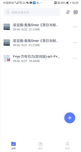 5、继续上传文件时,在文件页面中点击右下角的蓝色添加按钮就可以继续进行文件上传了。