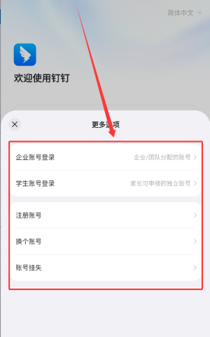 3、更多选项提供企业账户登录、学生账户登录、新账户注册及账户挂失等服务。