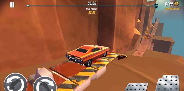 1、在界面的底部右下角是车辆的油门、刹车按钮,最右侧为油门;左侧是控制车头角度的按钮,最左侧为上仰。